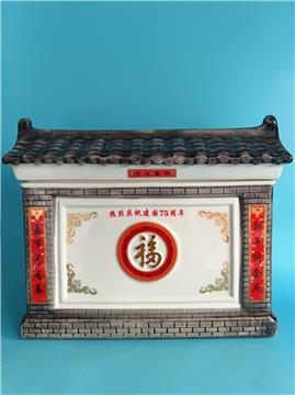 百善孝為先,影壁造型,山東宋樓酒業(yè)有限公司出品,52度濃香型白酒,容量2.5升,景德鎮(zhèn)陶瓷瓶,禮盒包裝,擺柜收藏饋贈(zèng)之首選。