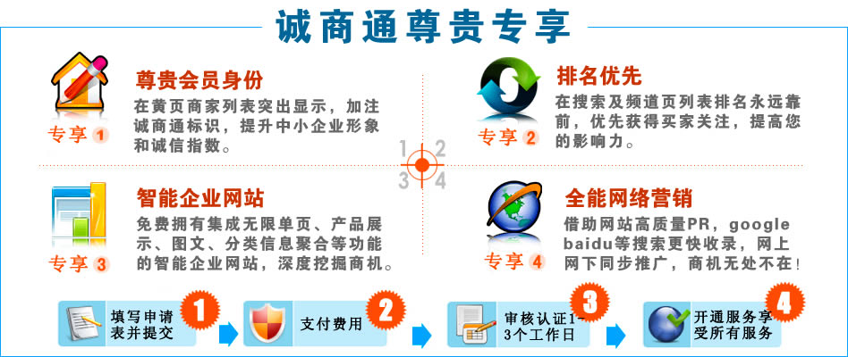 誠(chéng)商通服務(wù)是平原信息港為平原縣本地中小企業(yè)用戶(hù)提供網(wǎng)上做生意、結(jié)交商友的貿(mào)易平臺(tái)。依托平原信息港、龐大專(zhuān)業(yè)的買(mǎi)家群體和全方位的本地化推廣,中小企業(yè)可以借助"誠(chéng)商通"獲得多重商機(jī),領(lǐng)先對(duì)手!
